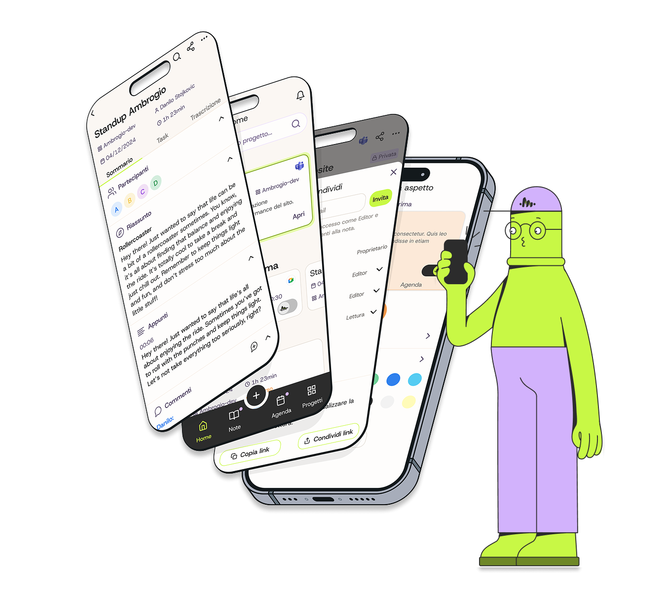 Creare un assistente virtuale per ottimizzare le riunioni di lavoro, trascrivendo, sintetizzando e organizzando gli appunti, con un'interfaccia utente intuitiva e accessibile su più piattaforme.